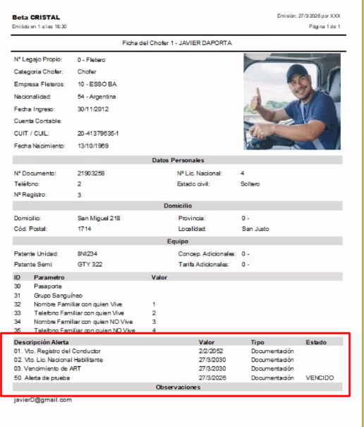 Se incorpora en la impresión de la ficha del chofer la visualización de los vencimientos asociados, permitiendo su verificación de manera directa