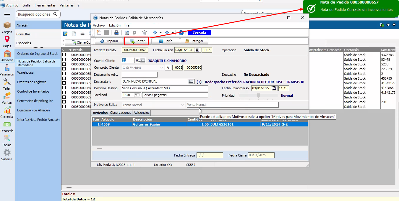 CERRAR NOTA DE PEDIDO: