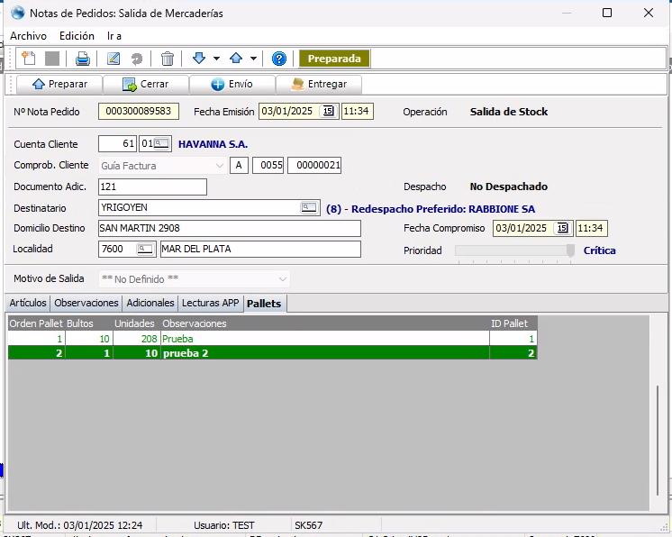 Esto es fundamental para los usuarios que utilizan Notas de Pedido en conjunto con Envíos, ya que en versiones pasadas debían crearlos desde la opción Original de clientes eventuales para volver a crear.