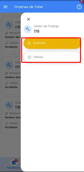 En este apartado solo podremos cambiar el estado de la OT de Pendiente a Autorizada