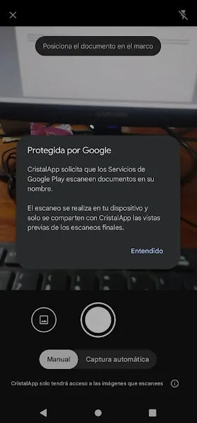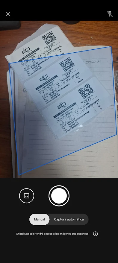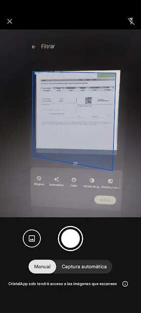 Captura automática: La APP nos explicará que se estará escaneando lo que se necesita y se tomará la captura cuando tenga una imagen fija.