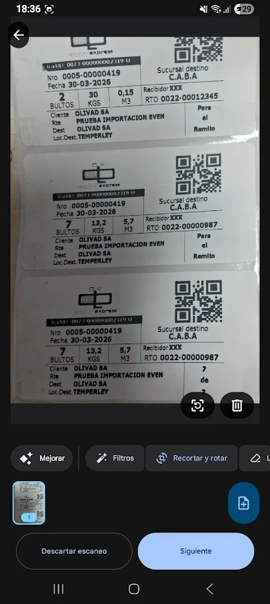 2. Se escanea la documentación necesaria para ese comprobante (1 o mas remitos) y se suben a la Guía.
