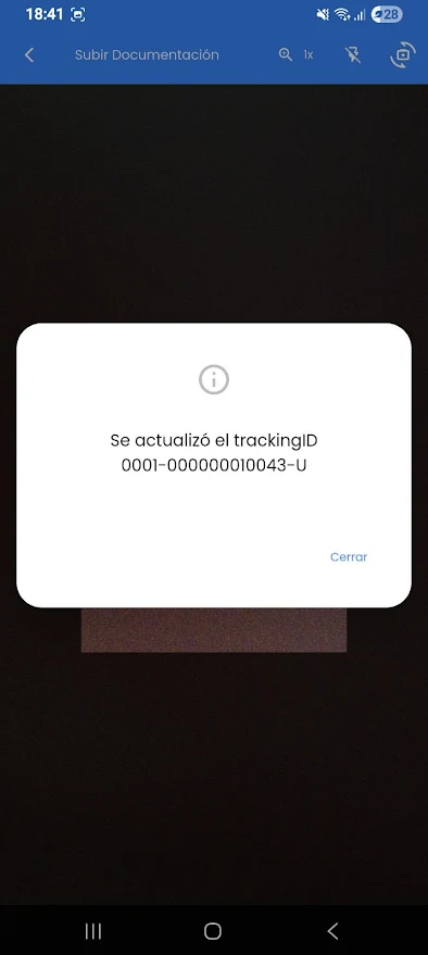 - Confirmamos y la app dará aviso que se actualizó el tracking correctamente: