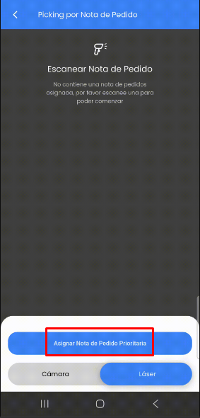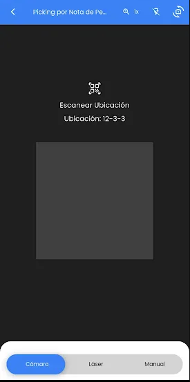 El peso que predomina es el del continente, en caso de que los artículos tengan "unidades", se tomará el peso por cada unidad para determinar el orden en la grilla.2. Una vez asignada (se asigna en la NDP el pickeador y fecha y hora de inicio de su tarea), para lo que son los Artículos con QR, la app le dirá al pickeador a que ubicación dirigirse. Esta ubicación podrá ser seleccionada a través de la cámara o láser, leyendo el QR de la misma, o ingresado manualmente