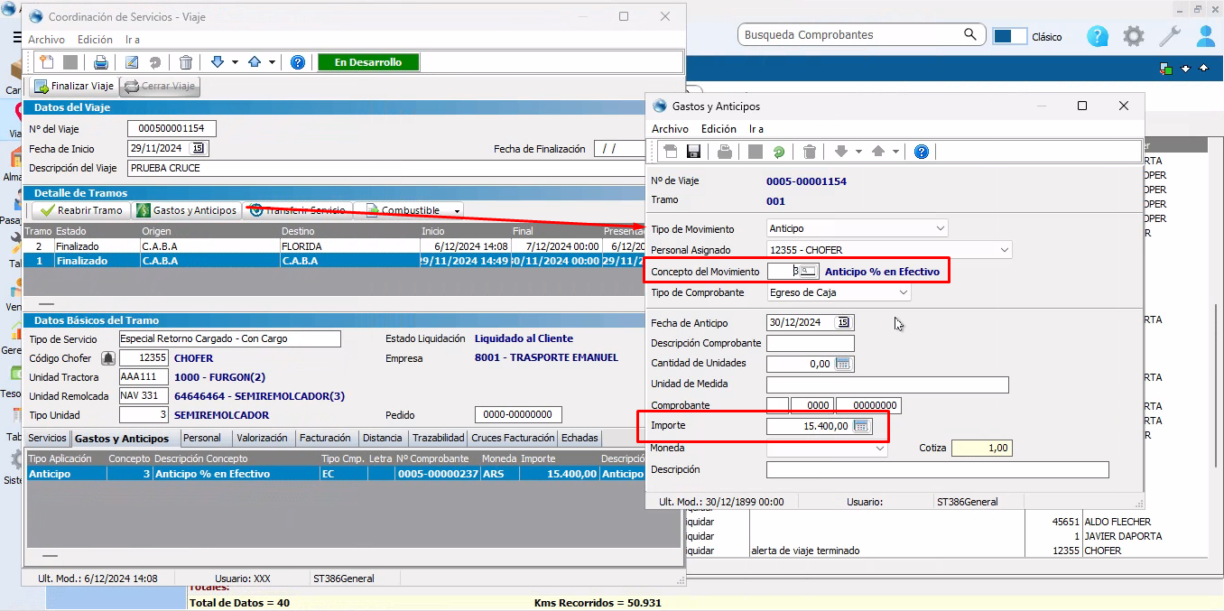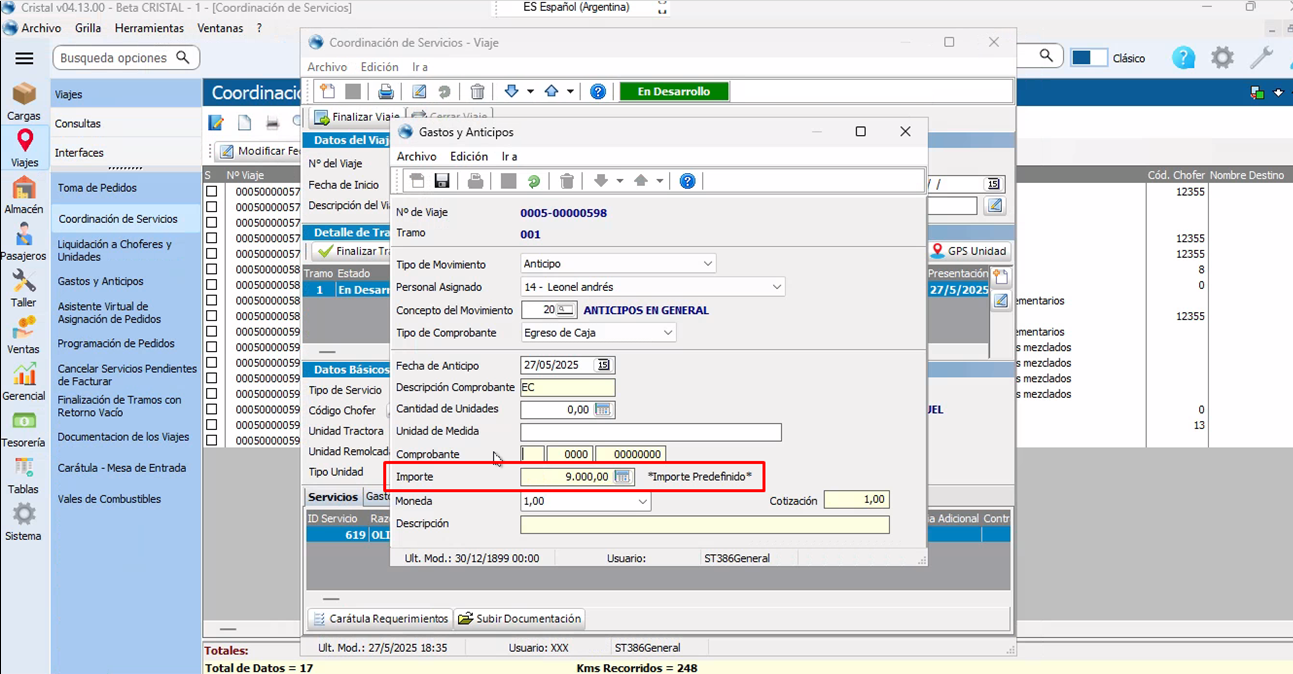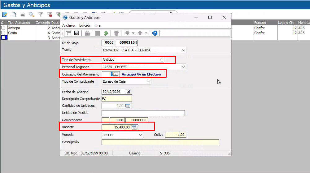 Se incorpora la posibilidad de configurar y predefinir los importes de los Gastos y Anticipos de acuerdo al Concepto del Gasto/Anticipo y Cuenta/Subcuenta. Se ideó con la idea principal de que, cuando el usuario carga un Gasto o un Anticipo para un Chofer o Acompañante, el sistema le sugiera el valor del mismo para que él pueda aceptarlo tal cual o editarlo.